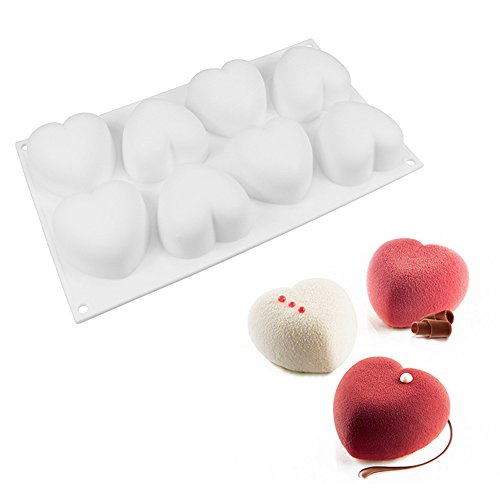Silicone Mold,Mousse Cake Mold , Heart Shaped For Valentine Christmas Truffle Desserts , DIY Kitchen Baking Tools,Non Stick ,8-Cavity , Set of 1