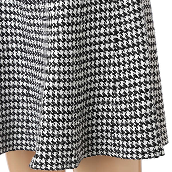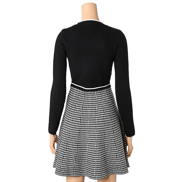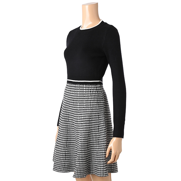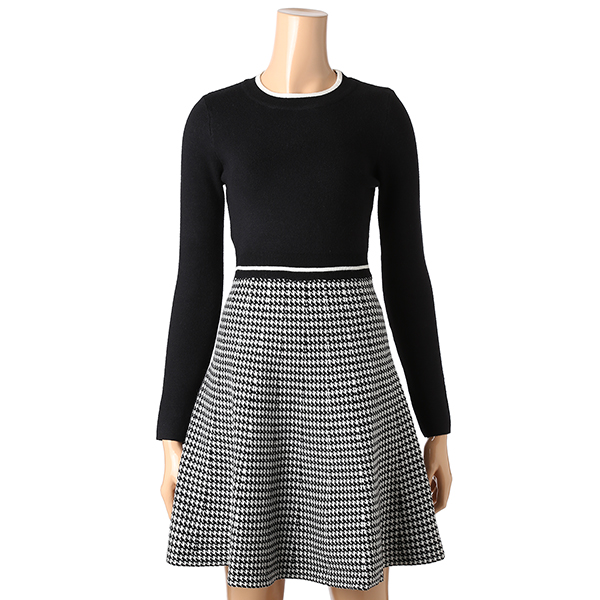하운드 투스 체크 패턴이 고급스런 A라인 니트 원피스입니다.