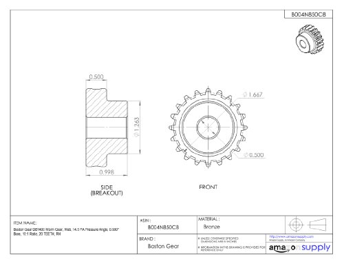 Boston Gear DB1400 Worm Gear, Web, 14.5 PA Pressure Angle, 0.500" Bore, 10:1 Ratio, 20 TEETH, RH