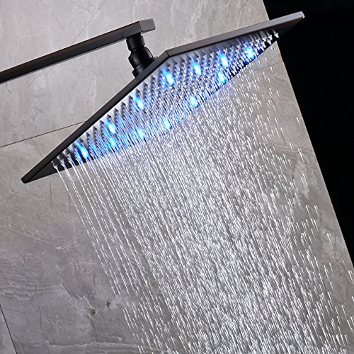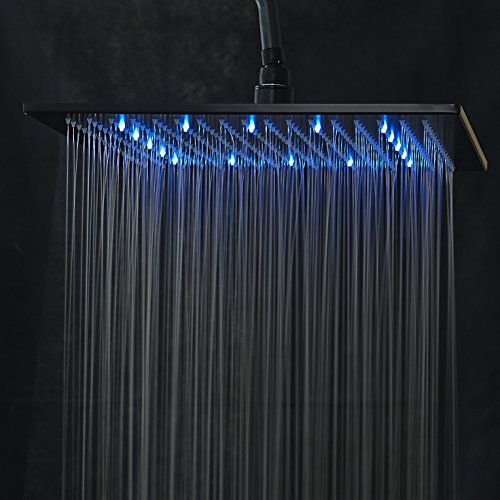 Rozin LED Light 16-inch Rainfall Shower Head Bathroom Square Top Sprayer Oil Rubbed Bronze(black)
