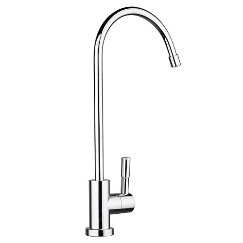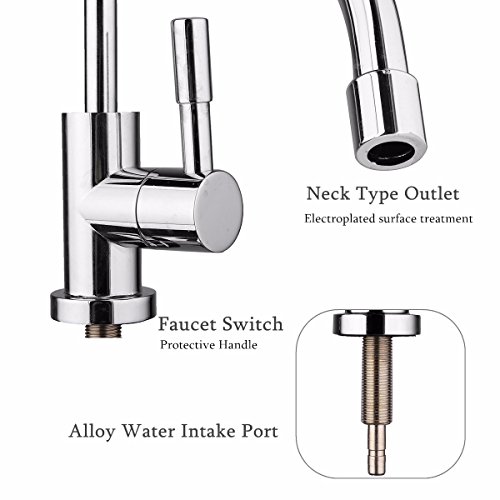 Faucet with graceful arc design,bright chrome plated finished,Uses 1/4" supply tubing,long reach spout