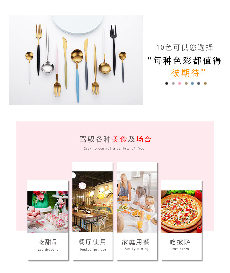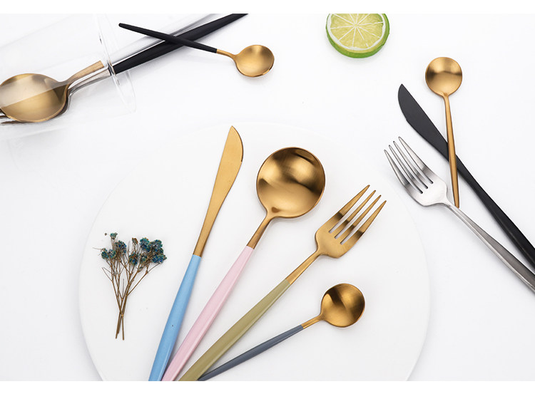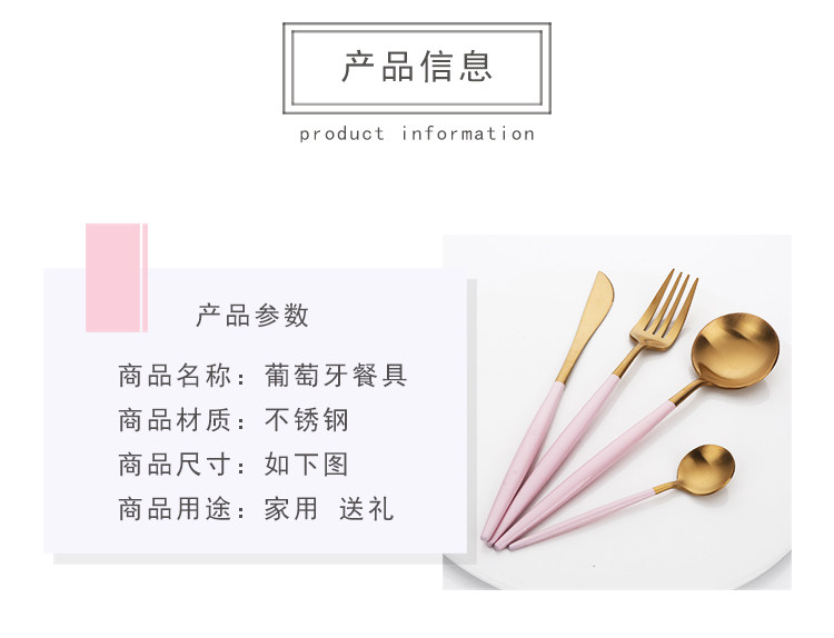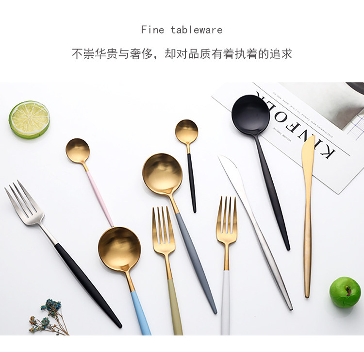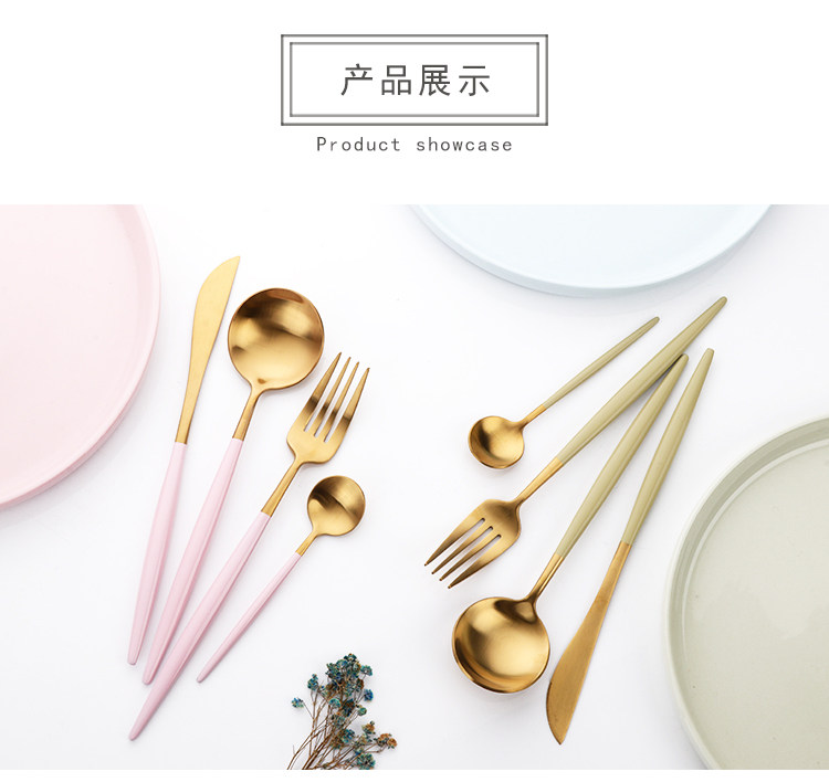 304不锈钢刀叉勺 创意镀钛葡萄牙四件套西餐餐具 牛排刀叉圆勺