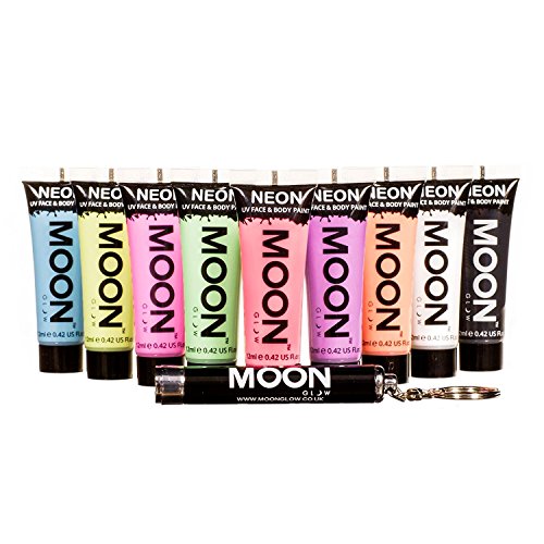 Moon Glow - Pastel Neon Blacklight UV Face & Body Paint - 0.42oz Set of 9 - includes UV Keyring