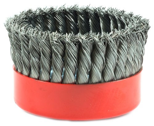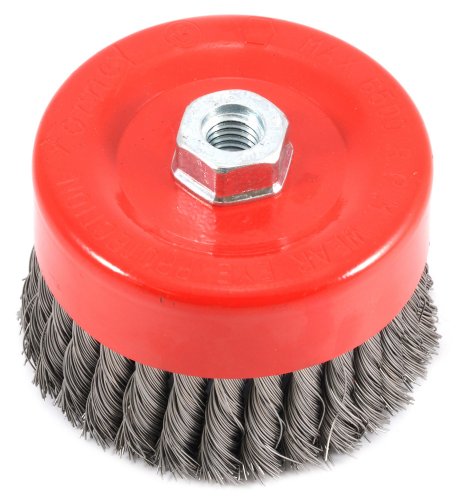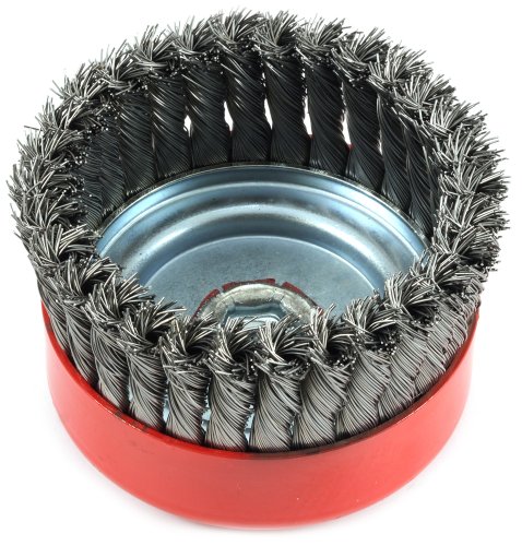 Forney 72756 Wire Cup Brush, Knotted with 5/8-Inch-11 Threaded Arbor, 6-Inch-by-.020-Inch