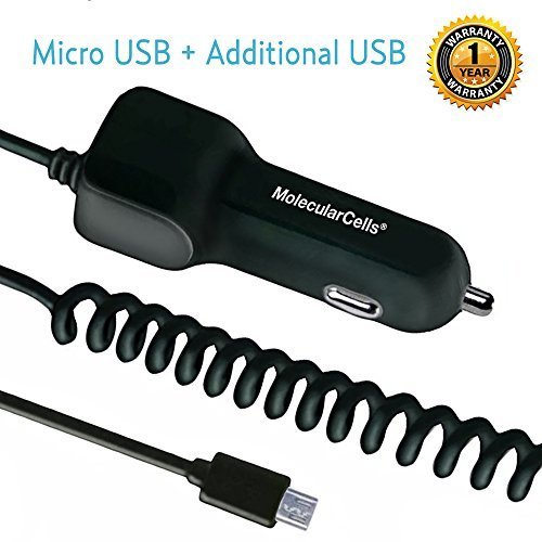 -. Title : Car Charger MolecularCells High Speed Travel Adapter with Extra Long Built-in Lightning Connector & Extra USB Port - Black
