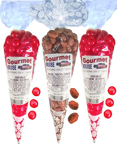 -. Title : Sour Balls (2) Fire Engine Red Cherry (1) Caramel Toasted Peanuts (NET WT 28 OZ) Gourmet Kruise Signature Gift Bags