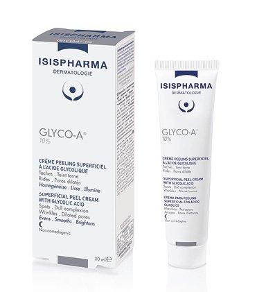 GLYCO-A10% Superficial peel cream with glycolic acid 30 ml INDICATIONS & PROPERTIES GLYCO-A 10% is a multi-actions renewal skincare. It helps remove the superficial layers of the epidermis and improves the general appearance of the skin. PROPERTIES OF THE MAIN INGREDIENTS • 10% GLYCOLIC ACID: Stimulates cellular activity / Weakens lipid bonds that hold dead cells together / Boosts collagen and elastin production / Stimulates hyaluronic acid production and optimizes the hydration of the horny layer / Regulates sebum production HOW TO USE Apply 2 to 3 times a week, in the evening, on a clean and dry skin. Rub until fully absorbed. No need to rinse. General protocol of care: Apply the peel care during one month and then let the skin rest the following month. Repeat the protocol until obtaining the desired effect. Precautions for use: GLYCO-A 10% is not suitable for sensitive skin. It is imperative to use a suitable, very high sun protection during treatment. Avoid contact with eyes. It is recommended to apply the peeling care outside of the summer season. PRESERVATIVE FREE • NON-COMEDOGENIC TESTED UNDER DERMATOLOGICAL CONTROLFeature