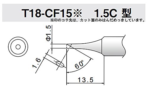 Hakko T18-CF15 - T18 Series Soldering Tip for Hakko FX-888/FX-8801 - Bevel - 1.5 mm/60? x 13.5 mm