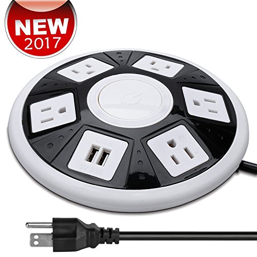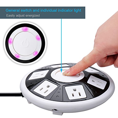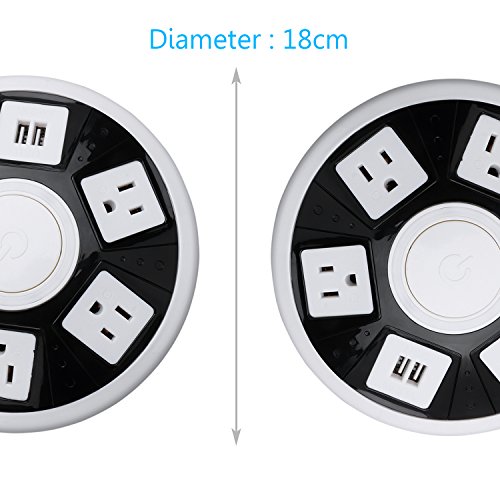 MULTI OUTLETS& SPACE SAVER: 5 AC plugs and 2 USB charge interface(1A/2.1A for choose). Diameter 18cm, 4.7cm high, save more place.