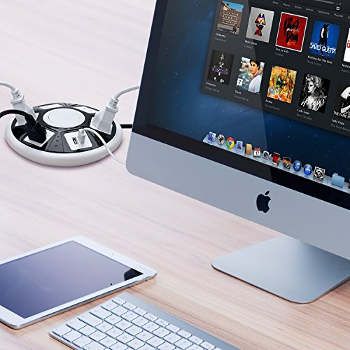 FlePow UFO Shape USB Power Strip 5AC Plugs and 2 USB 110V-250V 10A-13A 2500W-3000W Overload Protection 1A/2.1A(total 3.1A) 5V USB Interface Charge Power Surge Protector Usb Outlet Power Strips