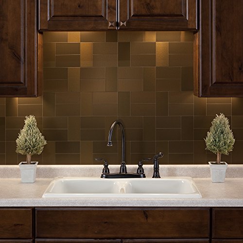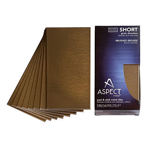 Aspect A53-53 Peel and Stick Backsplash Short Grain Metal Tile for Kitchen and Bathrooms, 3" x 6", Brushed Bronze