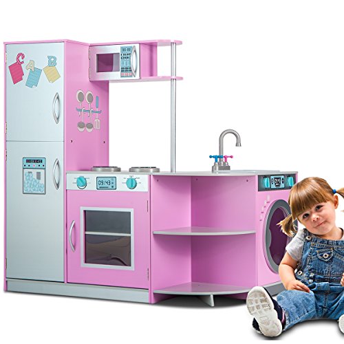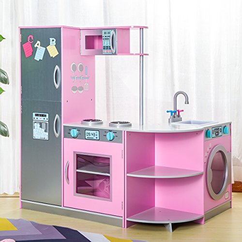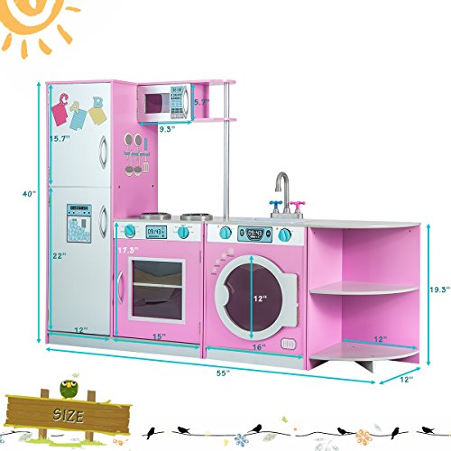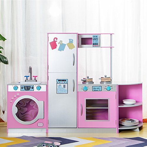 -. Feature : 【Multi-function Kitchen】This kid-sized kitchen includes refrigerator, freezer, microwave, oven, washing machine, removable dishwasher, with all the doors open and close, knobs click and turn. / 【Free Combination Style】This deluxe kitchen playset has 3 seperate parts, which can be combined into several different styles, provding the kids more enjoyment and help to develop children's intelligence. / 【Safety and Durability 】Made with long lasting materials, the playset finished with non-toxic paint, which features no harmful odor so that the kids can play it carefreely. Fully tested to meet all safety standards in the US. EN71 Safety Requirement Approved. / 【Assembly & Warranty】We offer explicit and understandable installation guide, helping you easily set up the set. All hardware included. With a wipe-clean surface, easy to clean. Any assembly question, please feel free to contact us. Free one year warranty. / 【Dimension & Specifications】Assembled Product Dimensions (L x W x H) : 55" x 12" x 40" (L x W x H), No cookware accessories. Recommended for kids ages three and up.