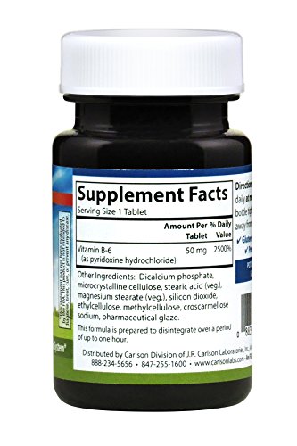 Studio : Carlson Labs Publisher : Carlson Labs Binding : Health and Beauty Product Description Vitamin B-6 is an important part of the B-complex group. It helps convert food to energy, supports red blood cell formation, and helps maintain skin and hair health. Each tablet provides 50 mg of vitamin B6. 0