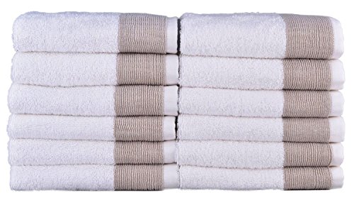 Lunasidus Venice 100-percent Luxury Turkish Combed Cotton Jacquard 12-Piece Washcloths, Beige