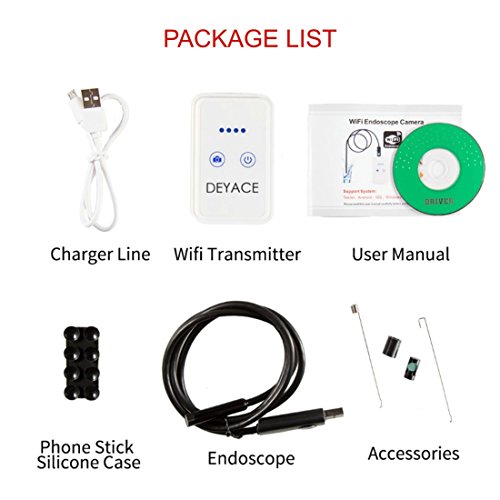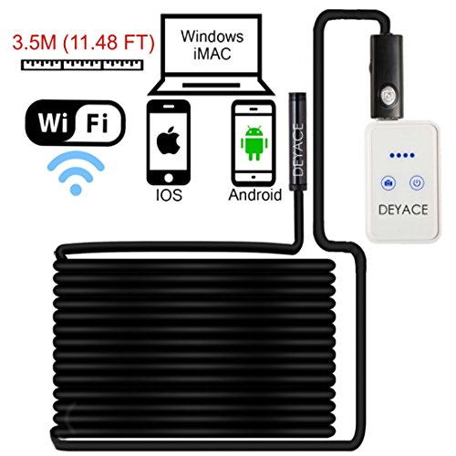 Wifi Endoscope, Deyace Wireless Endoscope Inspection Camera 2.0 Megapixels HD Snake Camera for Android and IOS Smartphone, iPhone, Samsung, Tablet, White (3.5 Meter)