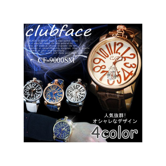 원본상품명:腕時計 メンズ クラブフェイス clubface CF-9000SM プレンタイプ 革ベルト