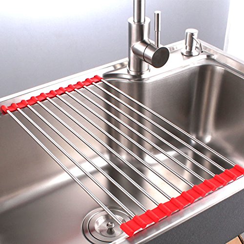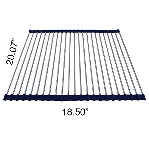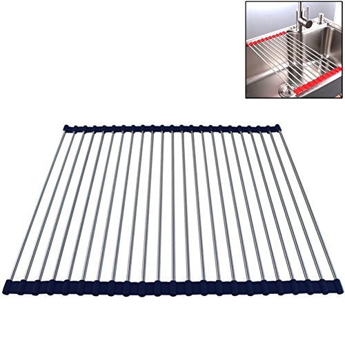 A.B Crew Kitchen Sink Stainless Steel Folding Drain Shelf Roll Up Dish Drying Rack Rollable 20.07 x 18.5 Inch Saving Space (Dark Blue, 20.07" x 18.5")