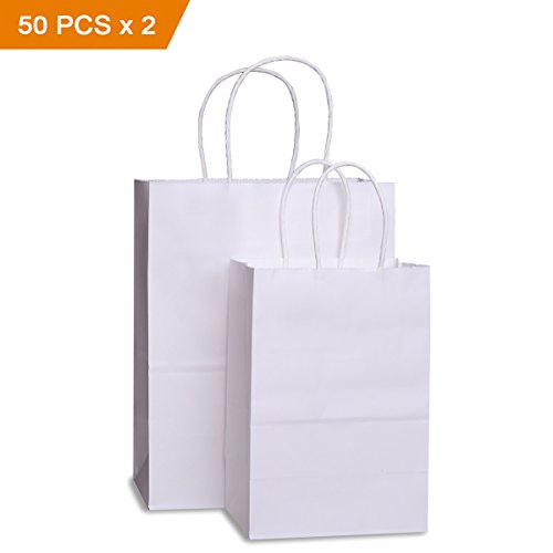 - PERFECT SIZE PAPER BAGS - 5.25x3.75x8& 8x4.75x10.5 Inch, 50pcs each size. 110g basis weight kraft paper with a serrated top edge. These white bags are made of 40% PCW Recycle Paper. FSC COMPLIANT.
