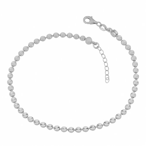 -. Title : Sterling Silver Diamond Cut Bead Adjustable Anklet (10 inch)