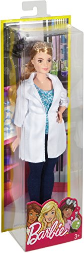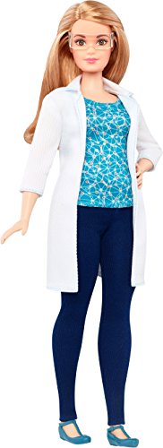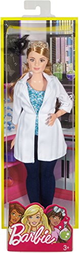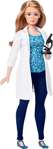 -. Binding : Toy -. Brand : Barbie -. EAN : 0887961368093 -. Feature : Dream big with Barbie career dolls / Young scientists will love exploring with Barbie scientist doll / She's ready to dive into her research wearing blue pants, a shirt with molecule-inspired print, blue shoes and a white lab coat / Her long blonde hair is partially pulled back in a trendy style / A microscope and goggles are the perfect way to help her make her next discovery -. IsAdultProduct : 0 -. Label : Mattel -. Manufacturer : Mattel -. Model : DVF60 -. MPN : DVF60 -. PackageQuantity : 1 -. PartNumber : DVF60 -. ProductGroup : Toy -. ProductTypeName : TOYS_AND_GAMES -. Publisher : Mattel -. Studio : Mattel -. Title : Barbie Careers Scientist Doll -. UPC : 887961368093 -. Warranty : 1 year warranty against manufacturer defects