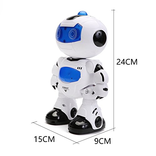 Product Information Remote control robot is very smart and quick, full function-forward,backward,turn left,turn right,light,music,auto demo.Walking Electric Robot including Light & Music.It can swing head and can swing arm and walk with music.Great fun!