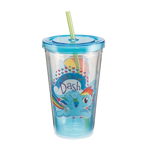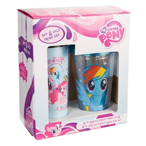 Vandor 42188 My Little Pony 16 oz Plastic Travel Mug and 18 oz Acrylic Travel Cup with Lid and Straw Set, Multicolor