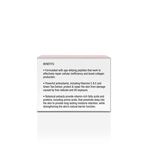 • Packed with age-defying peptides that work to effectively repair cellular inefficiency and boost collagen production.