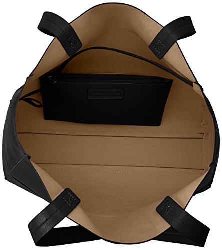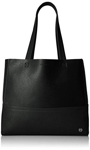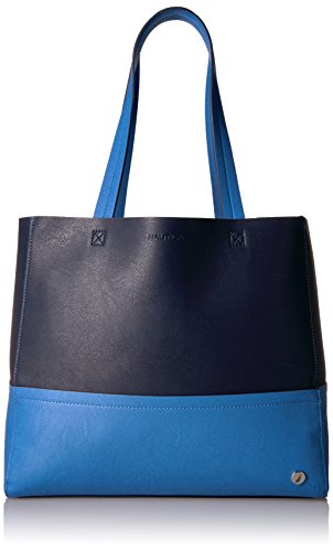 The Nautica straight away tote is a large open tote with blind emboss logo and signature j-class round plaque. Double shoulder straps with crossed stich detail and the connecting ends. Two-tone colorblock design. Perfect for any occasion