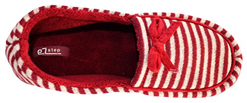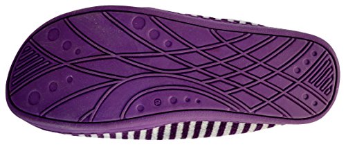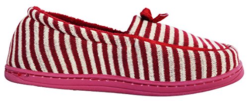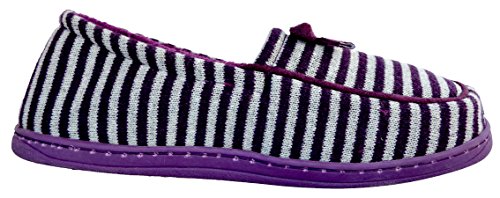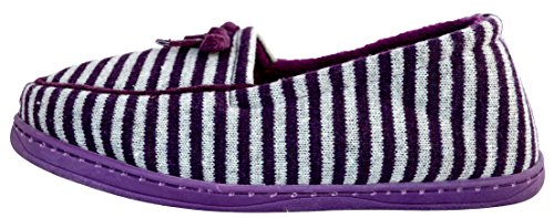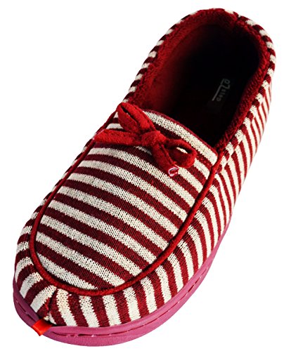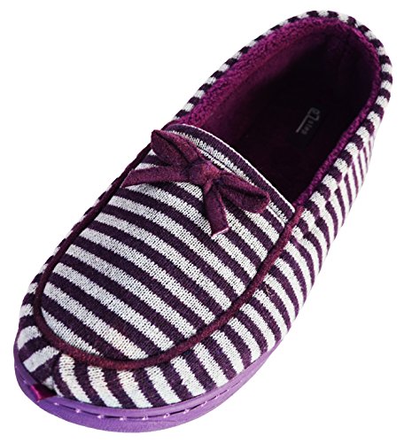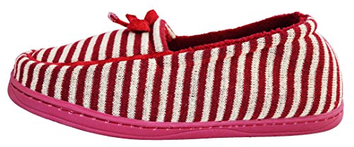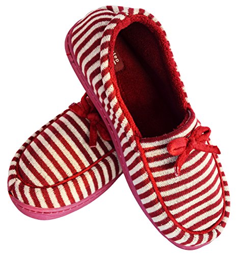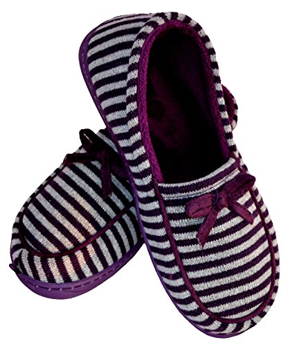 Binding : Apparel Product Description These moccasin style house slippers are comfortable and stylish with their striped design and cute bow. They are fun for the home and great for guests who come visit. The non-slip sole is rubber and light-weight, and the inside sole is lined and soft, hugging your feet as you wear them. Be agile, comfortable, and pretty while your feet are pampered in this cozy, warm, and lovely, shoe. 0