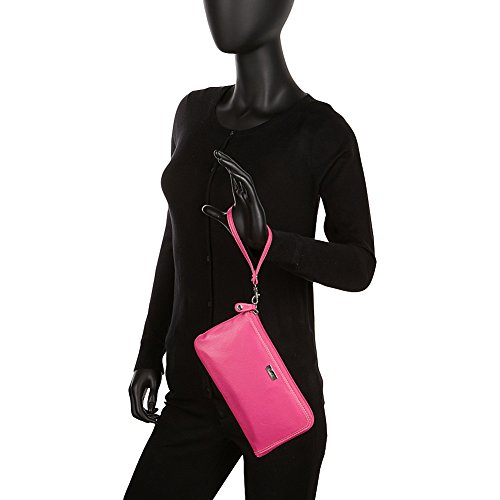Naturally Milled Buttersoft Leather with Contrast Stitch detail RFID L-Zip Expandable Wallet with Removable Wristlet