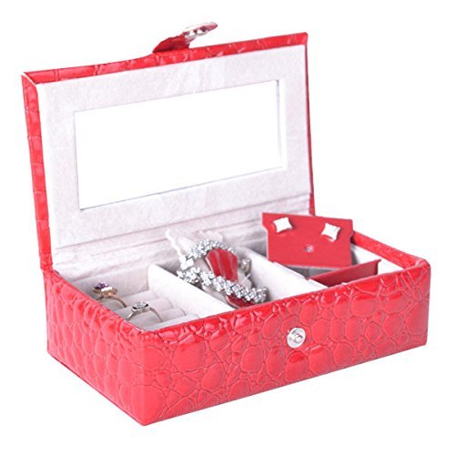MEINIA Portable Pu Leather Jewelry Storage Box Packaging Display Case for Earrings Rings Necklace Etc (Red)