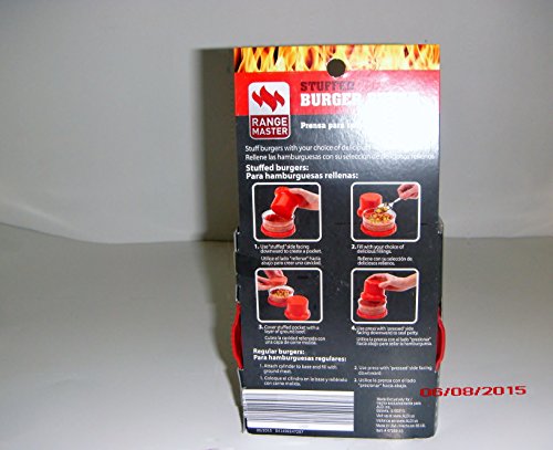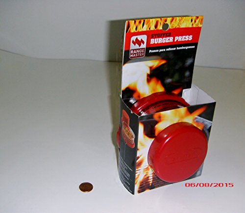 Range Master red stuffed burger press; adjustable with measures.