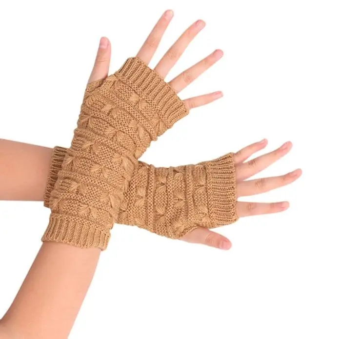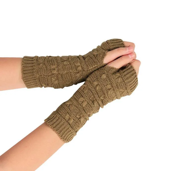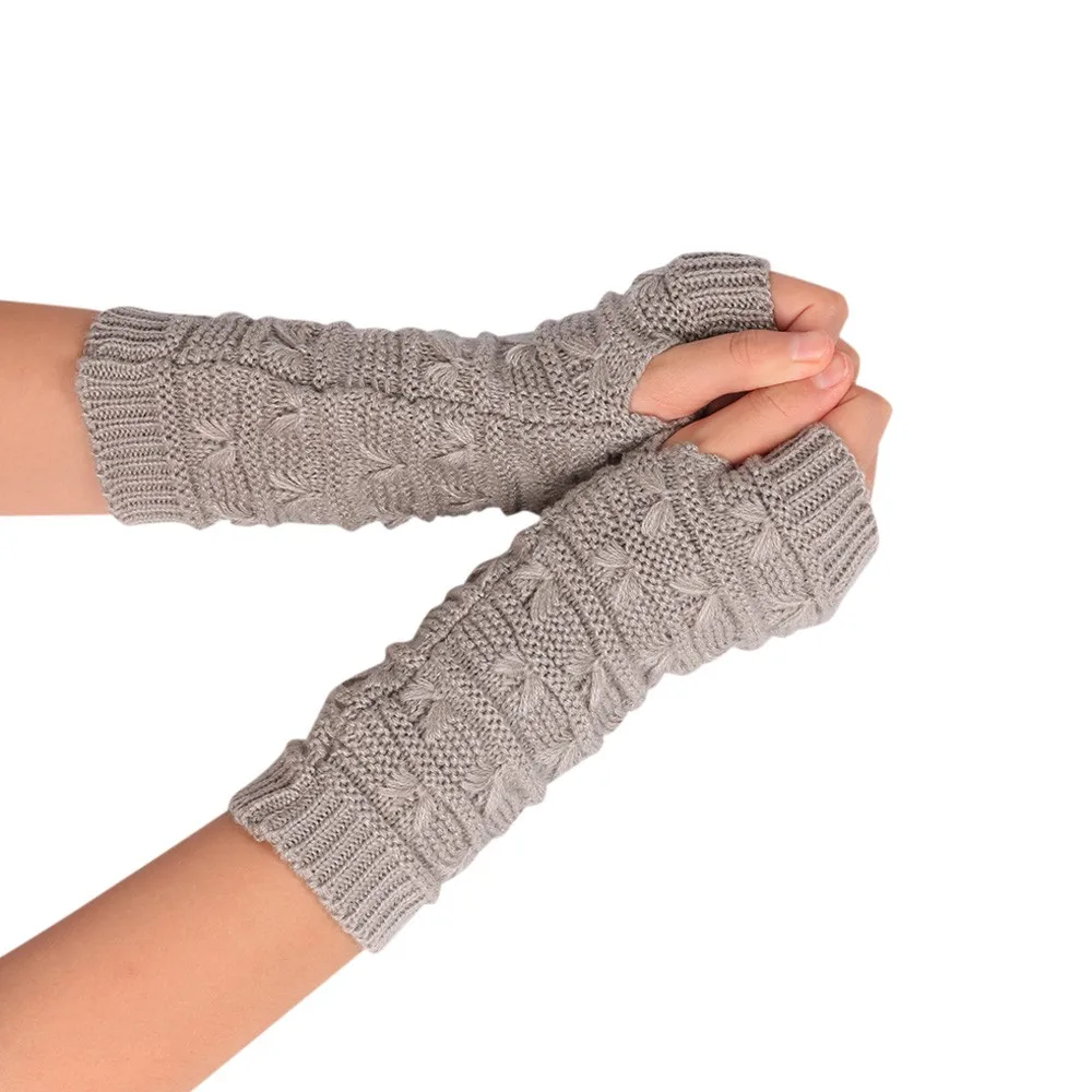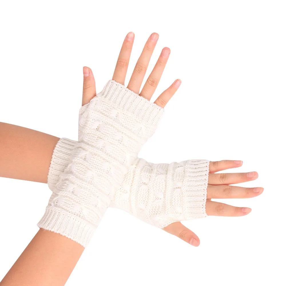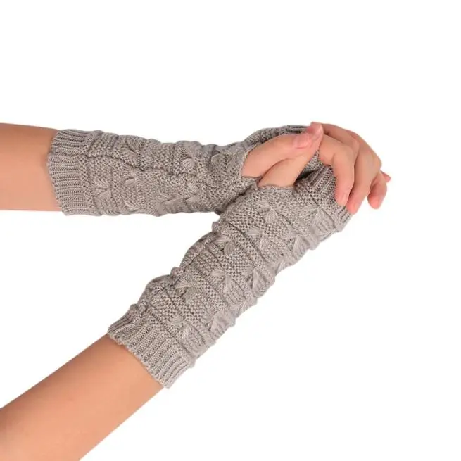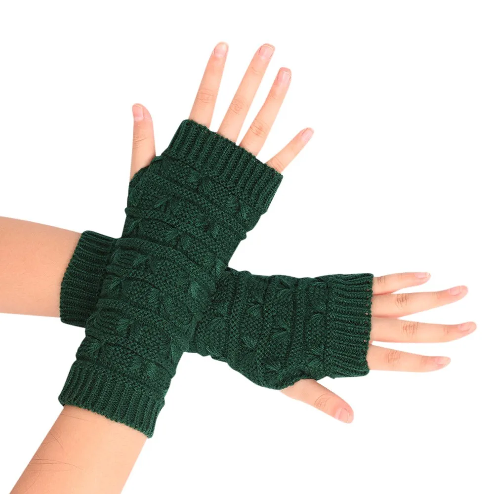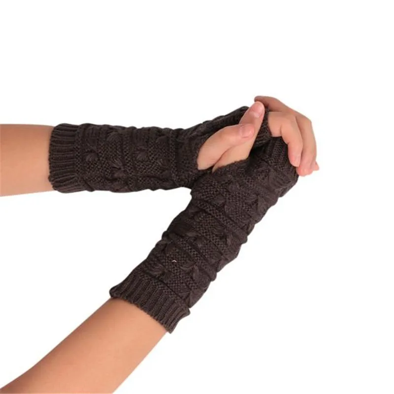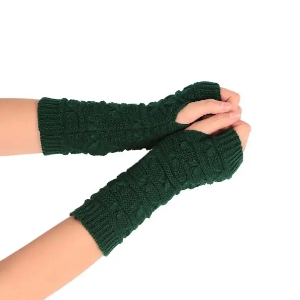 10:solid Long Fingerless Knitting Wool Mittens