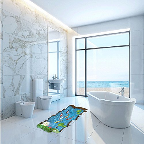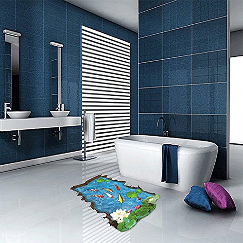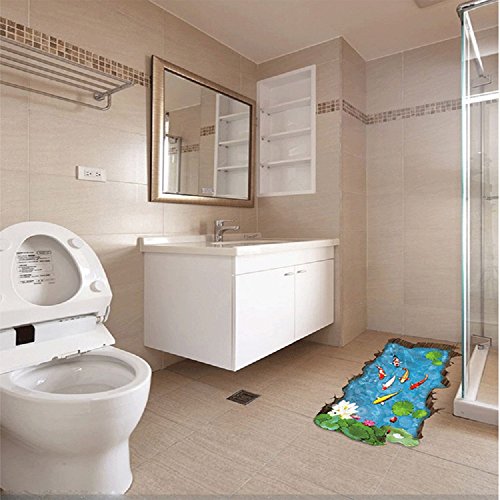 Amaonm Removable Creative 3D Fish Swim in The Hawthorn & Lotus Flowers leaf False Window Wall Decals Wall Stickers Murals for Bathroom Kids room Bedroom Front floor Living room Decorations