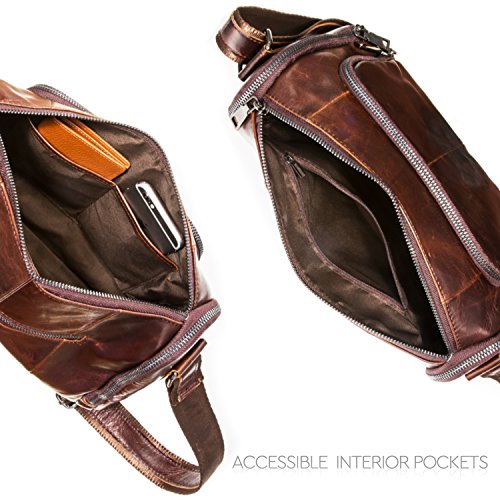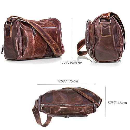 -. Title : Otto Genuine Cowhide Leather Classic Retro Men Shoulder Bag - Dark Brown
