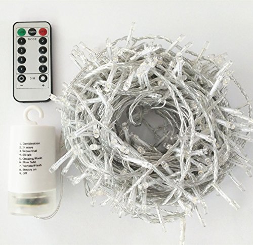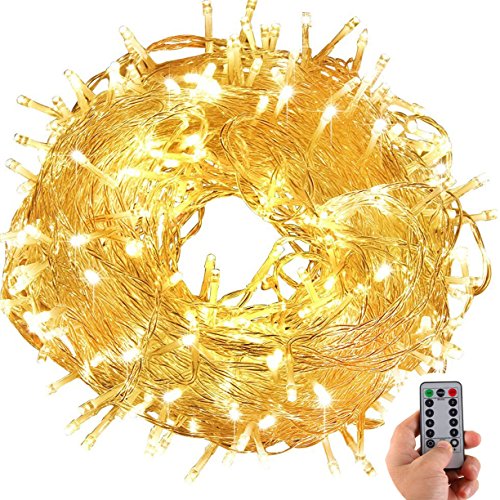 - 100 ft/30 Meters Long;8 Modes 300 warm white LED ;can switch modes and brightness by remote control (with 6 Hour Daily Timer) also can switch modes by battery box;Remote control distance:more than 16.4 feet/5 meters.