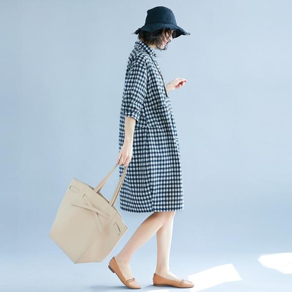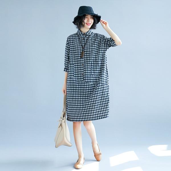 ファッションの定番!チェック柄のポロ襟ワンピース。