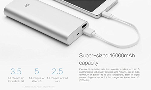 -. Binding : Wireless Phone Accessory -. Brand : Xiaomi professional store -. Color : Silver -. EAN : 0718520676116 -. Feature : Dual USB ports and premium Li-ion battery cells encased in a sleek aluminium casing / Premium Li-ion battery cells from reputable suppliers such as LG and Panasonic, with energy densities up to 725Wh/L, add an extra 16000mAh of battery life to your smartphone, tablet or digital camera. / Mi Power Bank automatically adjusts its output level based on the connected device. It is compatible with smartphones and tablets from Mi, Apple, Samsung, HTC, Google and BlackBerry, as well as a variety of digital cameras and handheld gaming devices. / World-class chipset protection Nine layers of circuit protection, built by Texas Instruments Mi Power Bank's adopted USB smart-control and charging/discharging chips from Texas Instruments provide nine layers of circuit chip protection while enhancing efficiency. / Optimized charging/discharging efficiency Up to 93% conversion rate World-class chips not only are safer, but also improve charging conversion rate and stabilize discharging voltage with advanced resistance-capacitance sensors to optimize efficiency and durability. -. Label : Xiaomi -. Manufacturer : Xiaomi -. PackageQuantity : 1 -. ProductGroup : Wireless -. ProductTypeName : WIRELESS_ACCESSORY -. Publisher : Xiaomi -. Studio : Xiaomi -. Title : Xiaomi Power Bank 16000mAh Dual USB Port External Battery Charger Pack Portable Charger for iPhone 6s 6 Plus 5s 5,iPad Air,Mini,Samsung Galaxy,LG,Google,HTC,MP4,MP3,Cell Phones,Tablets - Silver Color -. UPC : 718520676116