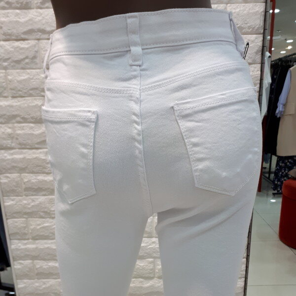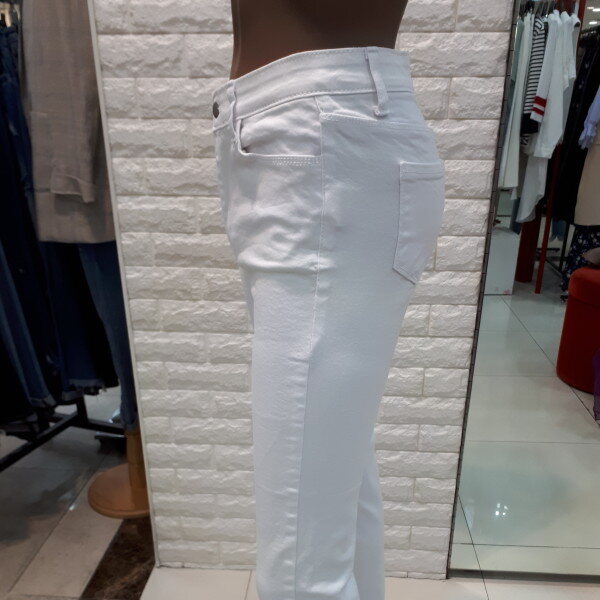 신축성이 아주 좋은 슬림한 일자핏 화이트 데님바지로 착용할때마다 착용감이 아주 좋아 활동성이 좋고 슨림한 일자핏으로 다리라인을 좀 더 슬림한핏으로 연출시켜줍니다~^^티셔츠나 블라우스등등 어떠한 이너류와 코디하여 착용하셔도 무난하게 소화가능한 인기 아이템입니다~^^♡