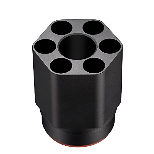 - Design: Classic revolver cylinder shape with red bottom, making a different look from common pen pencil holder; Aluminum alloy container and base in black color, keeping steady itself with good weight, showing mature property; Chamber shaped deep slot, holding your pens stably; Matte surface, good touch feeling; Soft rubber mat, anti-slip and avoid scratching; Rotatable body design, easy for picking a pen, adding fun to your work too.