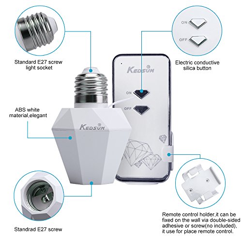 KEDSUM Wireless Remote Control E26/E27 Light Bulb Socket & ON/OFF Remote Controller Switch