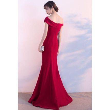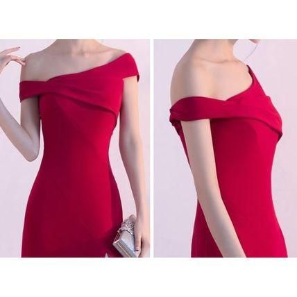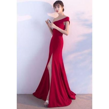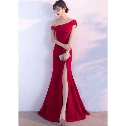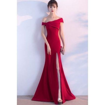 オフショルダー マーメイドライン ロング パーティードレス 衣装 スリット エレガント セクシー 上品 マキシ drgz0554