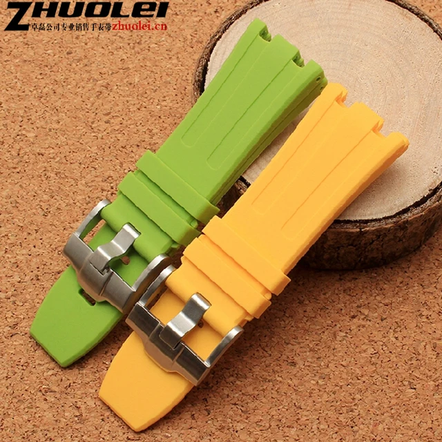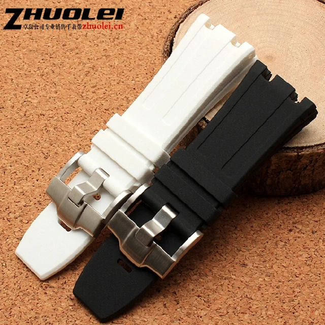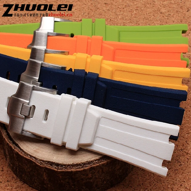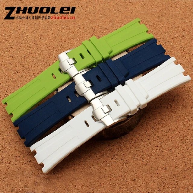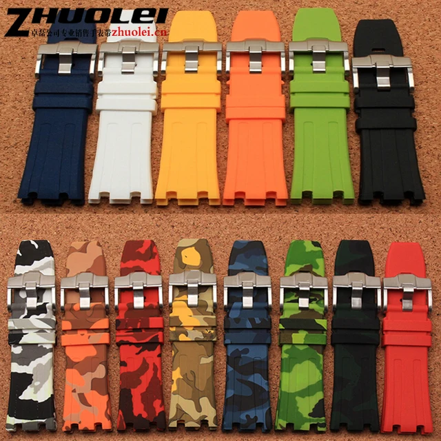 | [해외]높은 품질 28 미리메터 노치 엔드 위장 고무 손목 시계 스테인레스 스틸 버클 방수 실리콘 시계 테이프 스트랩 |