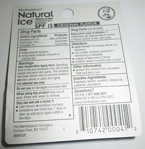 INDICATIONS: Natural cooling sensation tells you it's working. The soothing medicated formula of Natural Ice helps heal dry chapped lips. Cools, Soothes, and Refreshes. Smooth Glide-on Formula. Long Lasting Protection. Very High Level of Sun Protection.Feature