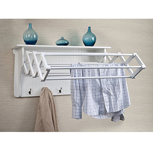 -. Binding : Kitchen -. Brand : Generic -. Color : white -. EAN : 0744745174984 -. Feature : Bright white finish is water resistant / Sturdy wood construction holds several items at once / Contains one shelf, 10-rack collapsible extension and five large hooks for extra storage / Measures 18" H x 36" W x 14" D / Use indoors for hanging wet clothes, storing keys and displaying decorations -. IsAutographed : 0 -. Label : Generic -. Manufacturer : Generic -. MPN : BQ0734 -. PartNumber : BQ0734 -. ProductGroup : Home -. ProductTypeName : HOME -. Publisher : Generic -. Studio : Generic -. Title : BQ0734 Accordion Drying Rack White -. UPC : 670045393452
