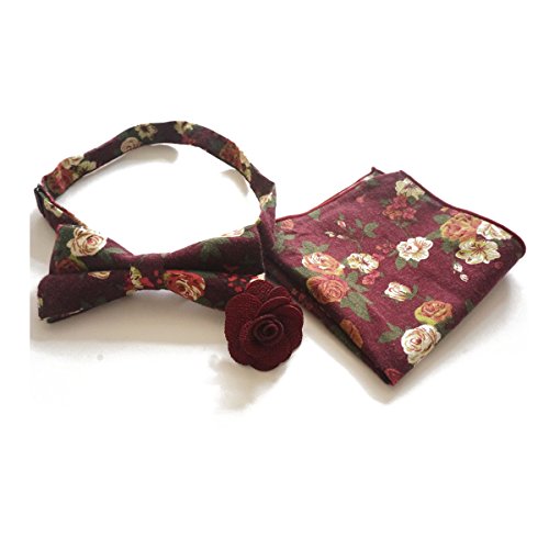 -. Title : Sunny Home Men's Cotton Floral P.R.Inted Bowtie,Pocket Square,Lapel Flower 3pcs Set for Gifts