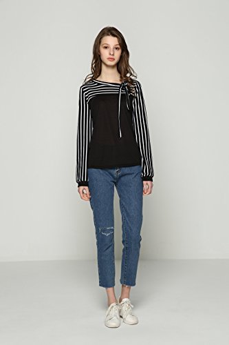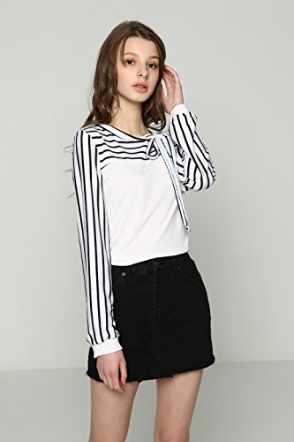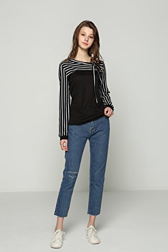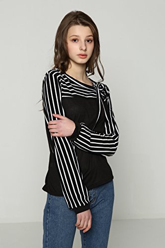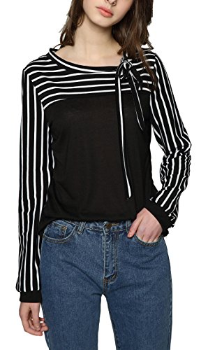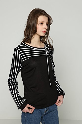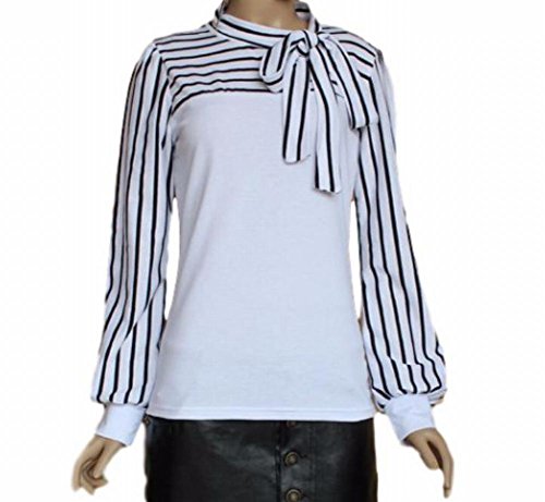 -. Feature : ≪サイズ≫【Sサイズ】着丈 54cm 身丈 57cm 肩幅 34cm バスト 78cm 袖丈 57cm【Mサイズ】着丈 55cm 身丈 58cm 肩幅 35cm バスト 80cm 袖丈 59cm【Lサイズ】着丈 56cm 身丈 59cm 肩幅 36cm バスト 84cm 袖丈 60cm【XLサイズ】着丈 57cm 身丈 60cm 肩幅 37cm バスト 86cm 袖丈 61cm / 【2XLサイズ】着丈 58cm 身丈 61cm 肩幅 38cm バスト 90cm 袖丈 63cm  カラー:白(ホワイト)黒(ブラック) サイズ:S M L XL 2XL カラー・サイズバリエーション豊富に取り揃えております。 / 大人気の切り替えブラウス風のボーダートップスです。首元には女性らしい印象を与えてくれるリボン付きです。柔らかい素材で肌ざわりが良く長時間着ていても身体に負担をかけず着て頂けます。可愛らしくそして女性らしいデザインは1枚でトップスとして、ジャケットやカーディガンなどのインナーとしてもおしゃれが楽しめるアイテムです。シーンによって綺麗めにも可愛いらしい印象にもなるので着回し力抜群です。 / シンプルなデザインなのでボトムスやスカートなど何でも合わせやすいカットソーです。スキニーに合わせてカジュアルに、スーツに合わせてシックやフォーマルにとどんな種類も着こなせます!トレンチコートやジャケットとも合わせやすいので、様々なシーンに活躍できる1枚です。飽きの来ないブラウスは年齢も問いません!10代 20代 30代 40代 50代 60代どの年代の女性にもおしゃれを楽しんで頂けます。 / さらさらとした着心地で通気性も良く長時間着ても負担にならない素材で機能的です。形が格好良くスタイリッシュなので、デートやお呼ばれ、仕事やオフィスだけでなく卒園式、卒業式、入園式、入学式、発表会、結婚式、二次会などのフォーマルシーンにも大活躍です!春夏秋冬季節を問わず着られるのでオールシーズン使っていただけますのでいざという時に1枚持っておくと便利です。
