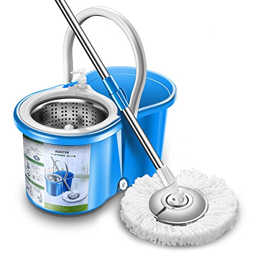 -. Feature : Our spin mop dry basket is Stainless Steel, unlike other who uses plastic or aluminum. The handle is also constructed out of stainless steel for durability and backed by our 1 year warranty. / No foot pedal, No plastic spinning axis, No other unnecessary moving parts (wheels, agitator) to break or cause leaks. Mop head wrings 2X drier than foot pedal version. Sturdy, yet lightest bucket out of all spin mops makes it easier to fill and dump water. / Super microfiber mop head (x2) cleans better than cotton, dries floor instantly, and leaves no streaks. Machine washable mop heads last 6-12 months. Can also be used as dry mop to pick up hair and dust. / Dual-spout bucket and patented centrifugal spinning design cleans and dries the mop head without getting your hands dirty / Now you can save time and effort as our self-wringing system allows you to spin off excess water with only one move; just push the handle against the bucket - mopping made easy!