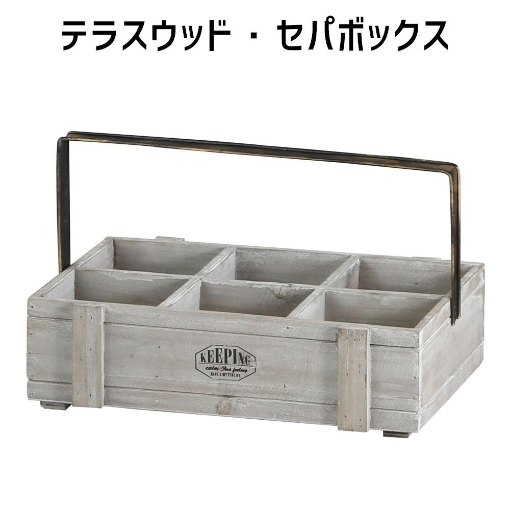 収納はもちろん、園芸アイテムとしてもお使いいただけます♪ 製造国:中国 素材・材質:ウッド(広葉樹)、アイアン 商品サイズ:W33×D24×H9.5cm(取手含まず) 仕様:取手折りたたみ可 ※サプライヤー直送品 ご注文後2~3営業日後の出荷となります【商品名】アビテ(Habiter) テラスウッド・セパボックス WEA-206-GY