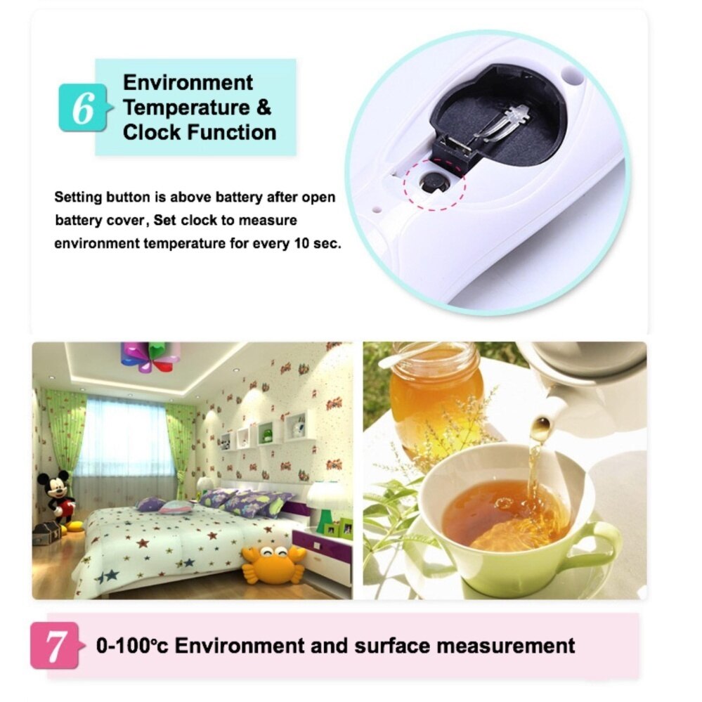 - Multiple Function - Digitally measure ear, forehead, object, room temperature & clock show